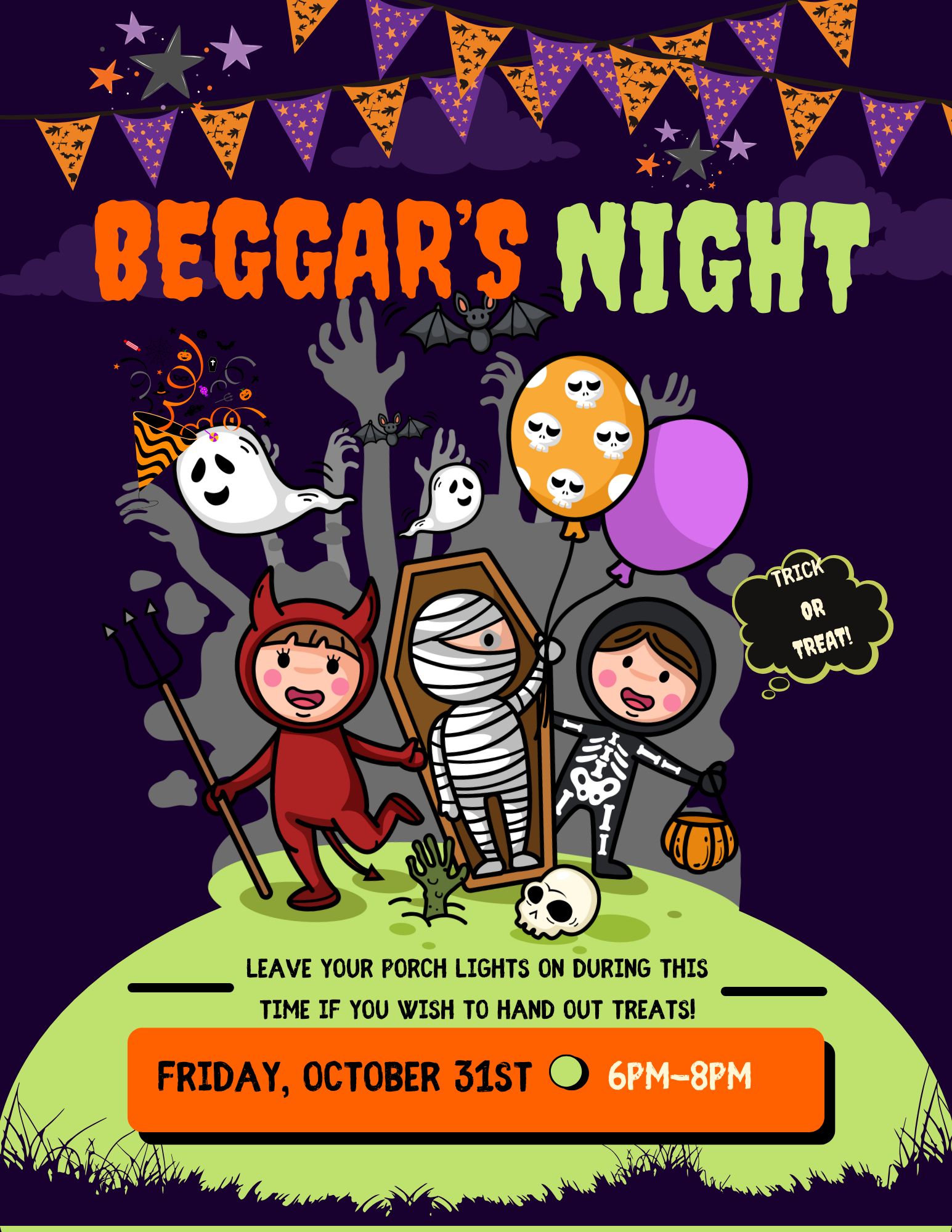 TRICK OR TREATING RUNS FROM 6PM - 8PM