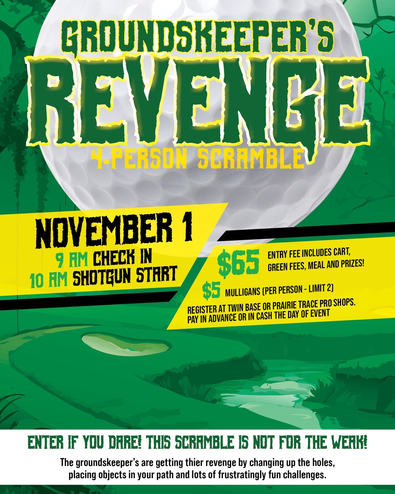 JOIN US AT TWIN BASE GOLF COURSE ON SATURDAY. BRING YOUR GOLF PARTNERS FOR THIS 4-PERSON SCRAMBLE AND SEEK REVENGE ON THE COURSE WITH FUN CHALLENGES AND CHANGING OF THE HOLES.
