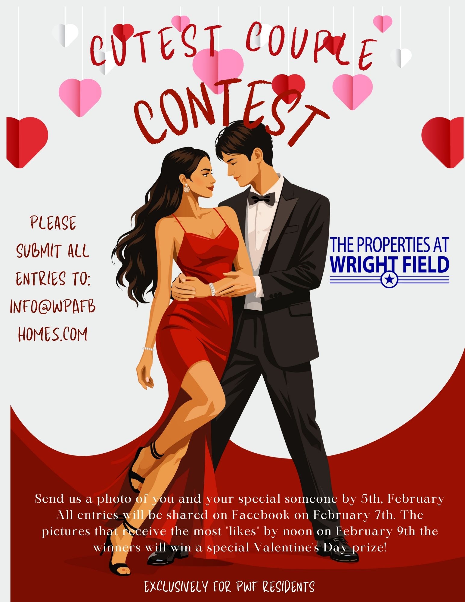 SEND US A PHOTO OF YOU AND YOUR SPECIAL SOMEONE BY 5 FEBRUARY TO INFO@WPAFBHOMES.COM TO BE PART OF THE CONTEST. PLEASE INCLUDE YOUR NAME AND ADDRESS IN THE EMAIL.